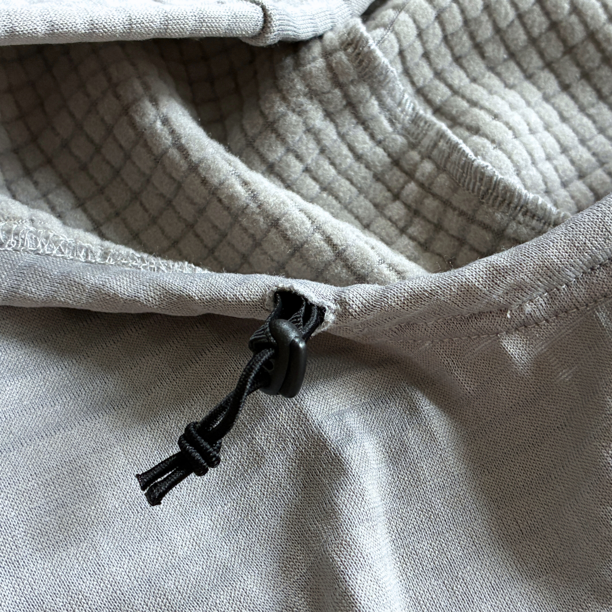 Power Grid 採用獨特的雙組織網格結構,在關鍵區域保留蓬鬆纖維以提升保暖性,同時減少不必要的重量與體積,讓布料能兼具輕量與效率。